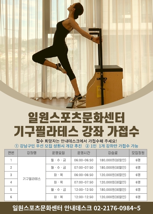일원스포츠센터 일원스포츠문화센터 기구필라테스 강좌 가접수 회원모집