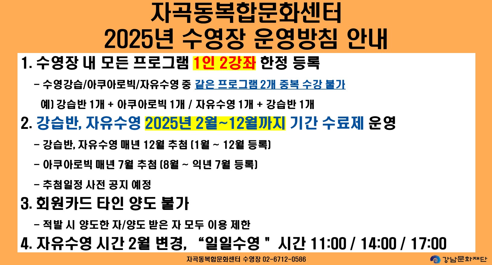 자곡동복합문화센터 2025년 자곡동복합문화센터 수영장 운영 방침 & 월별 진도표