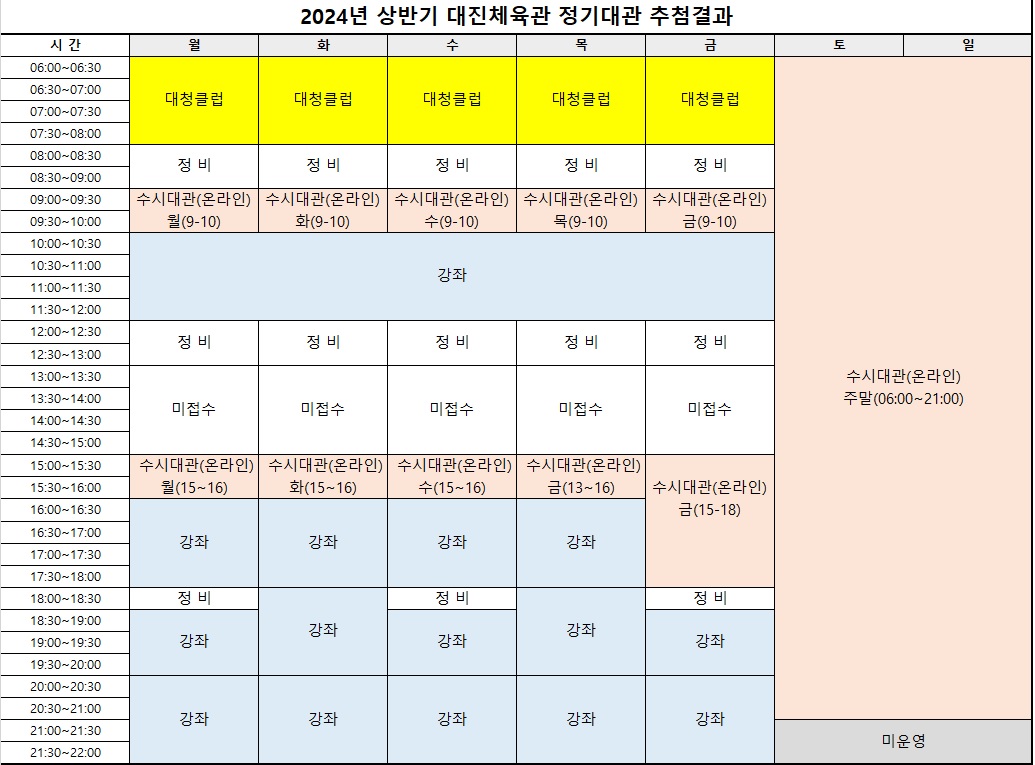 2024년 상반기 추첨결과(대진체육관).xlsx [ Size : 13.26KB , Down : 997 ] 다운로드