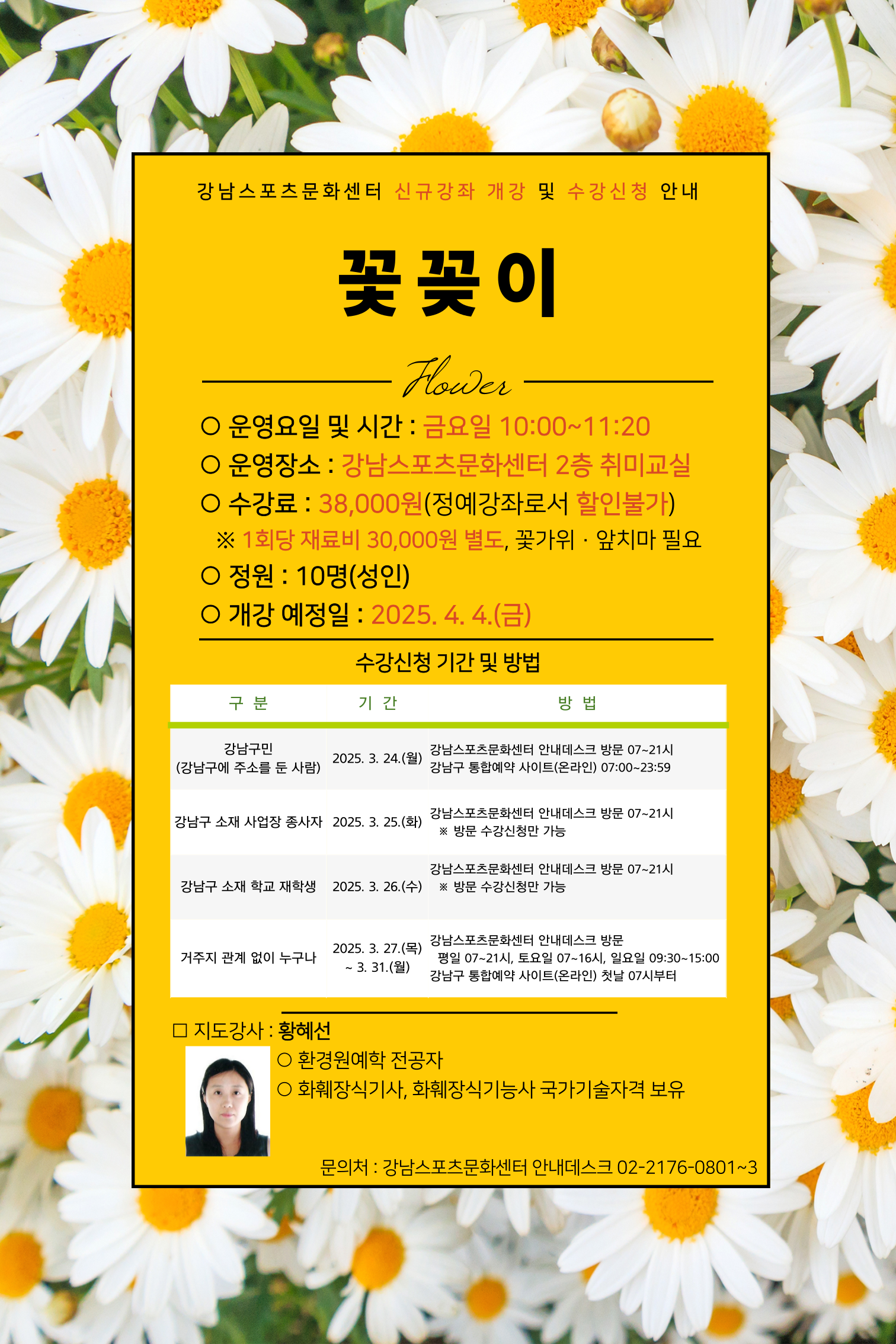 □ 문의처: 강남스포츠문화센터 안내데스크 02-2176-0801~3
