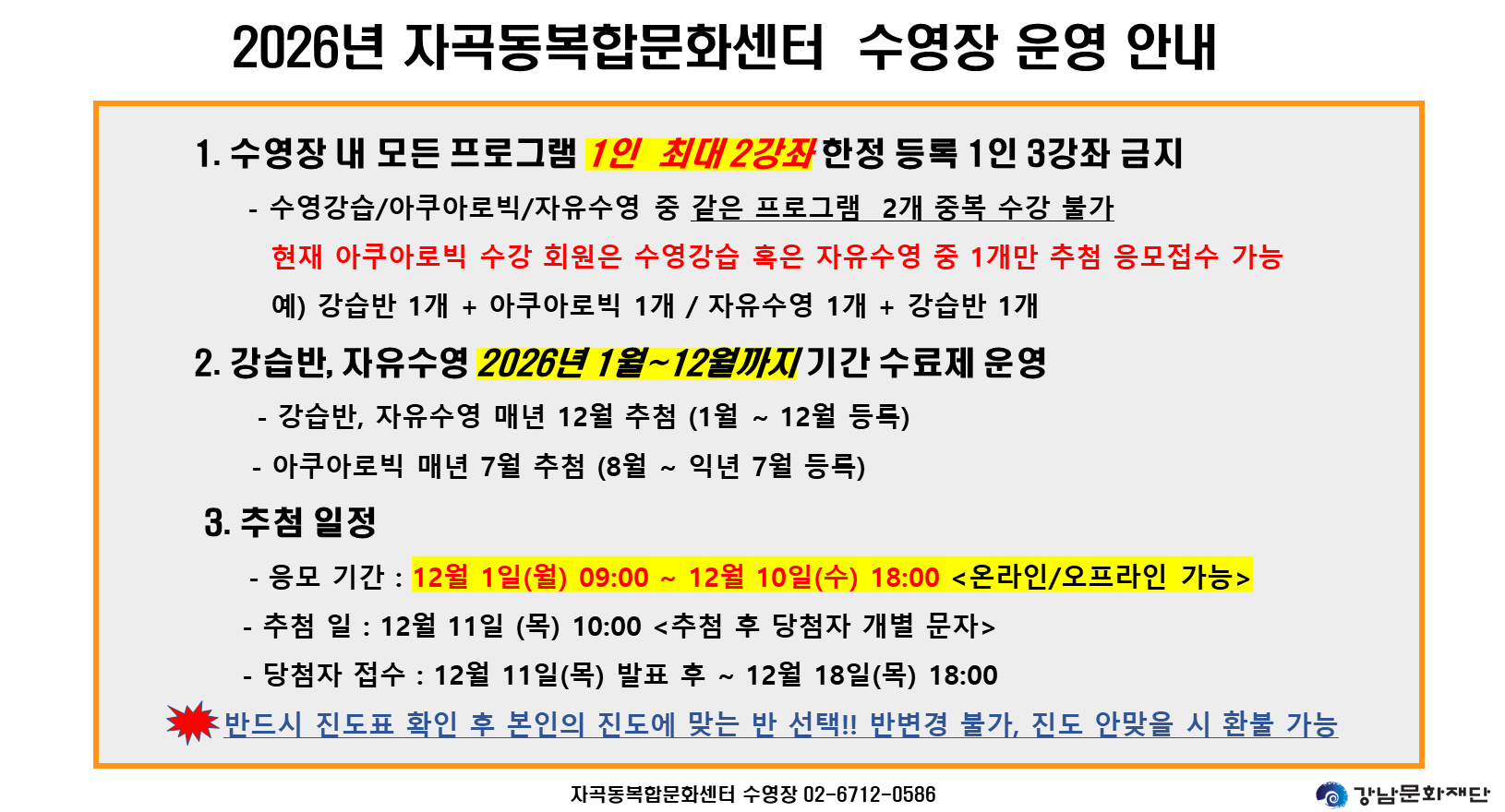 공지 자곡동복합문화센터 2026 자곡동복합문화센터 수영장 추첨 안내