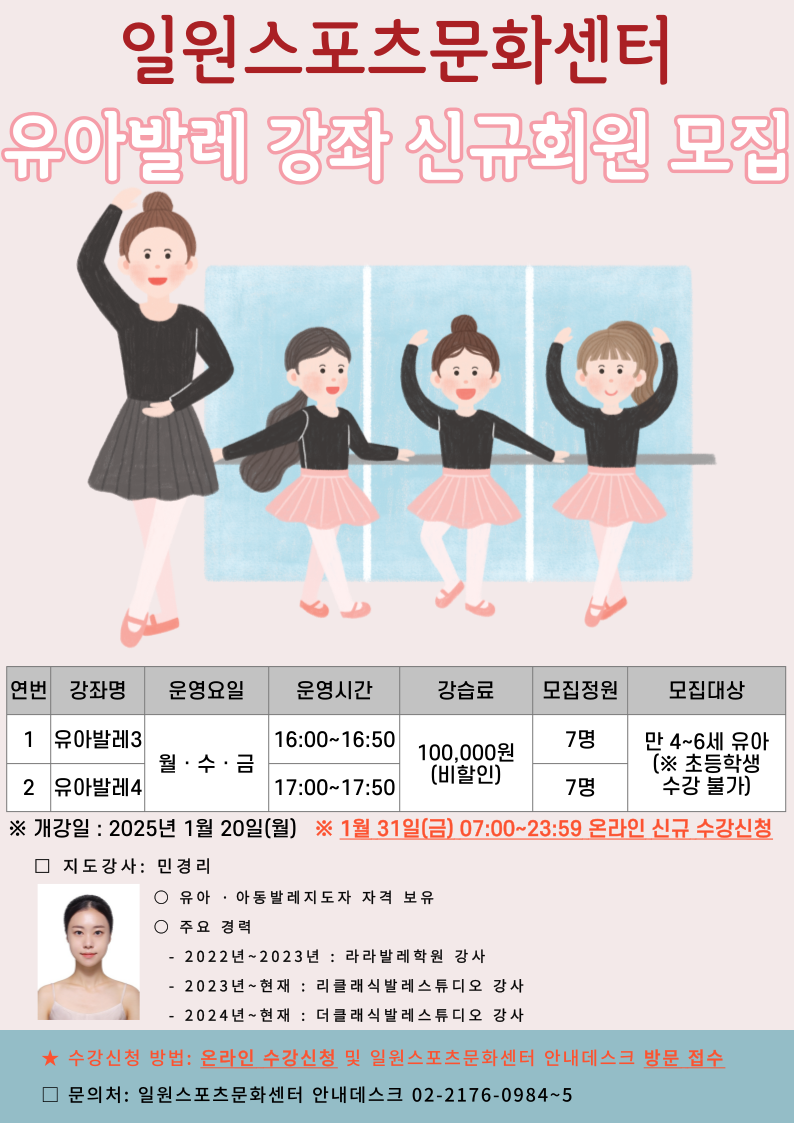 ★ 일원스포츠문화센터 '유아발레' 월 · 수 · 금요일 강좌 2월 신규회원 모집 ★