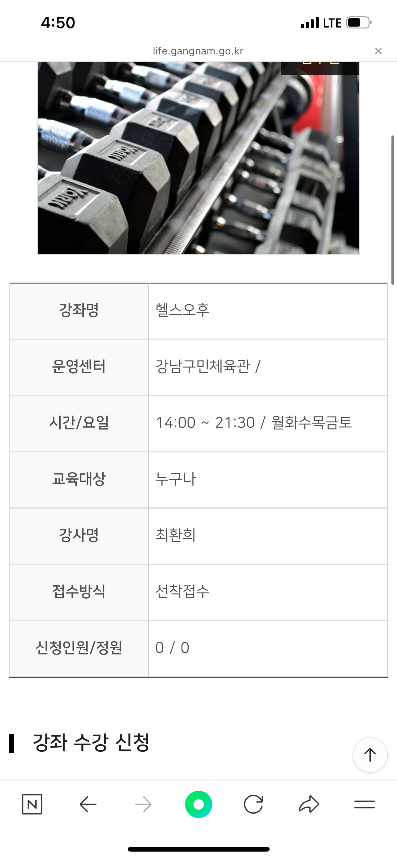 수강신청 이거 헬스 트레이닝 받는건가요? 아니면 자유이용하는건가요 작성자 박은비 작성일 2024년 2월 12일 4시 52분 26초 조회 474 IMG_1551.png [ Size : 1.34MB , Down : 144 ] 미리보기 다운로드 강남구민체육관수강신청에 헬스 오후가 있는데트레이너쌤께 받는건가요? 아니면 그 시산대 자유 아용금액인가요? 목록보기