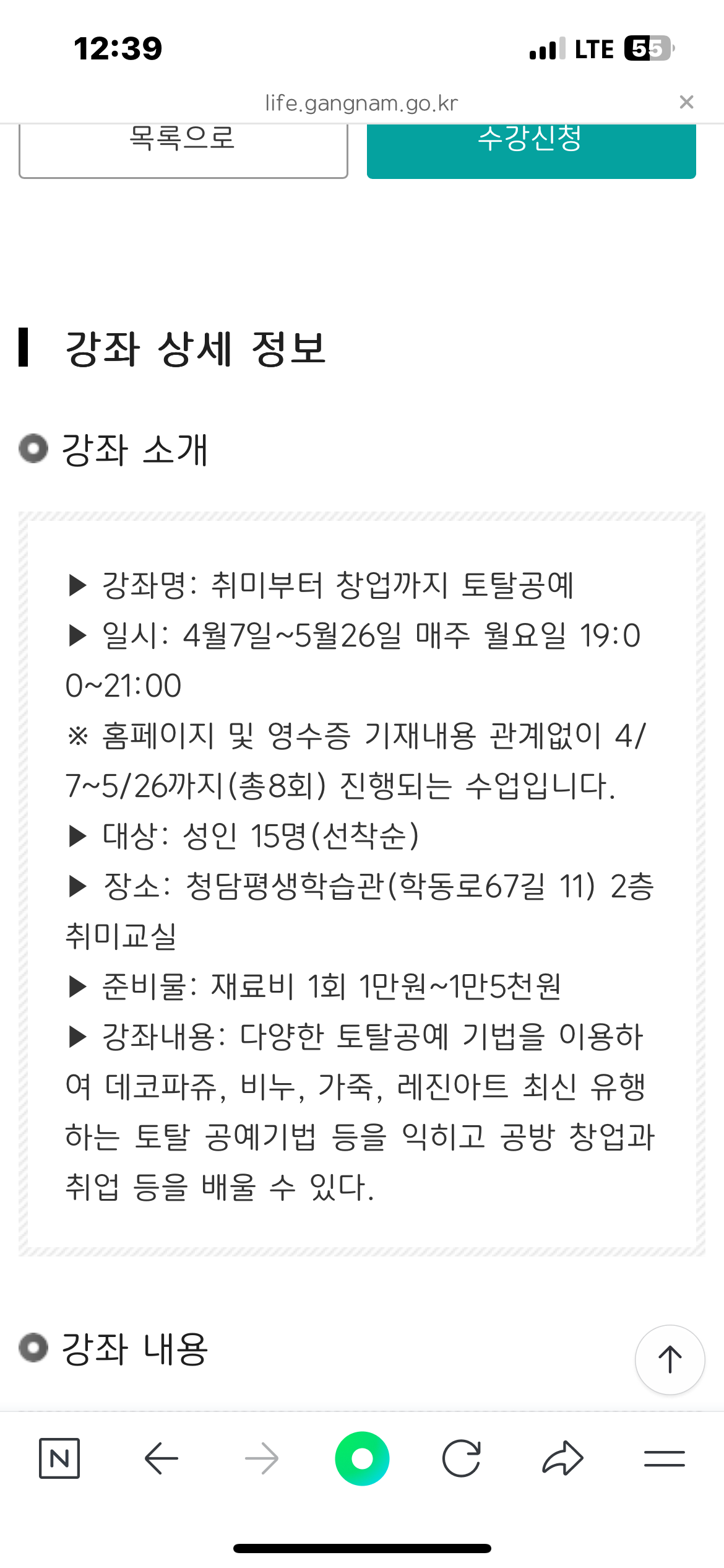 안녕하세요, 4월 7일 저녁 7시~9시 취업창업공예 특강 수강 1회 후, 다음 날 오전 근무시간 시작하자마자 사무실 방문하여, 수강 취소를 요청했는데요, 수강신청 시, 재료비 환불 불가 공지 없이, 등록하였음에도, 재료비 환불이 어렵다는 연락을 받아 당황스럽습니다. 환불이 어렵고 재료로 가져가라고 하시는데, 환불받고 싶습니다.