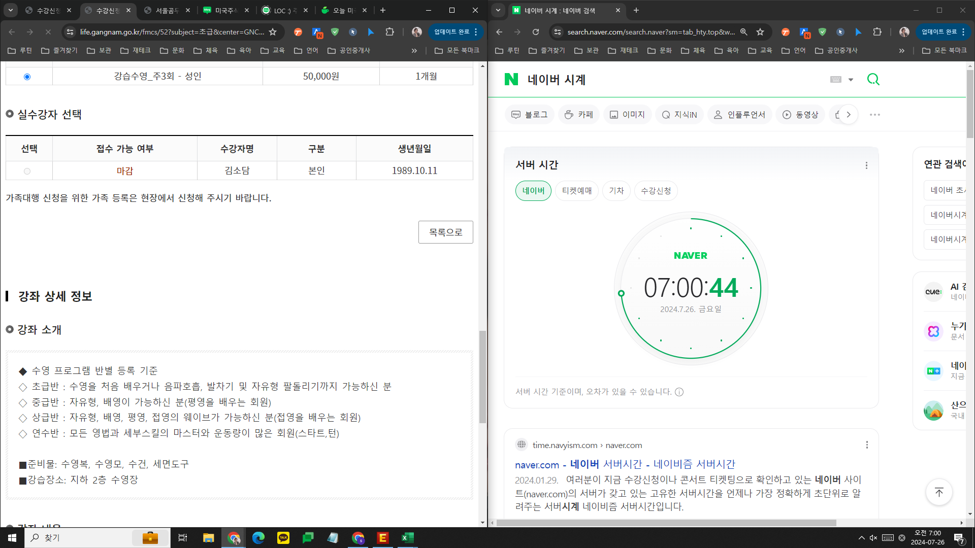 7시 전부터 네이버 서버시간을 보면서 대기 중이었고,