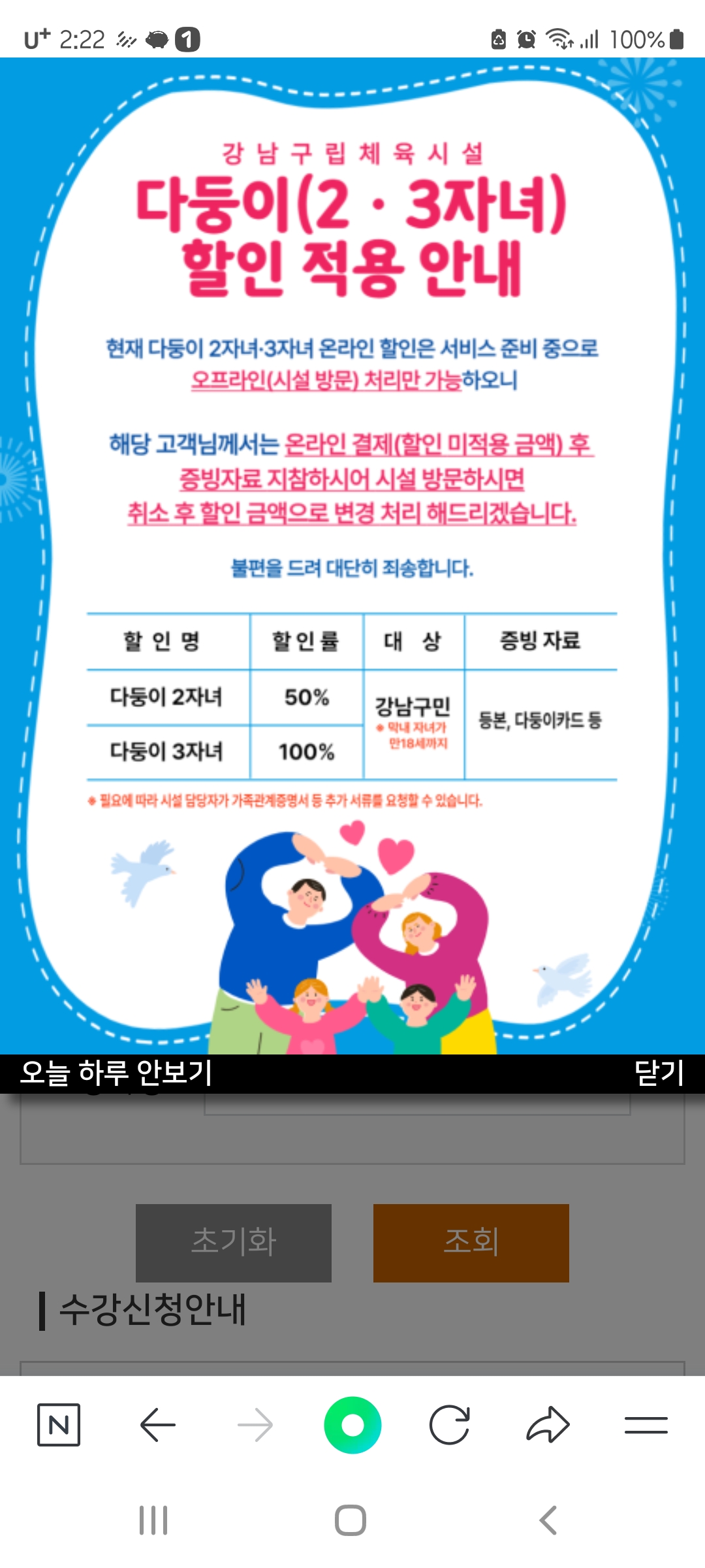 첨부된 내용처럼 홈페이지 팝업창에 할인 적용 내용이 있는데