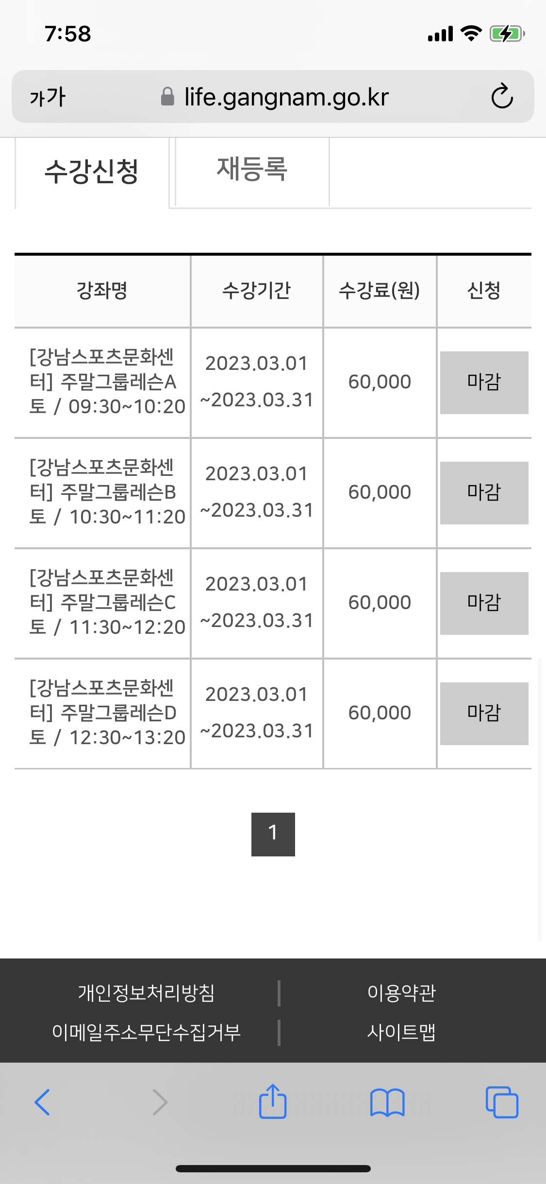 신규 수영 수강등록을 하려고 7시부터 접수 버튼을 클릭했습니다. 7:00, 7:30, 두 시간 모두 접수전으로 뜨다가 혹시 몰라 8시 되기 전 다시 접속해보니 아래와 같이 전체 마감되었다고 나오네요. 대체 시스템이 어떻게 작동하는 겁니까? 특정인들과 사전공모해서 신규 회원은 알 수 없는 시간에 오픈해버리는 건가요? 수강신청과정이 불투명해보입니다. 소명해주시기 바랍니다.